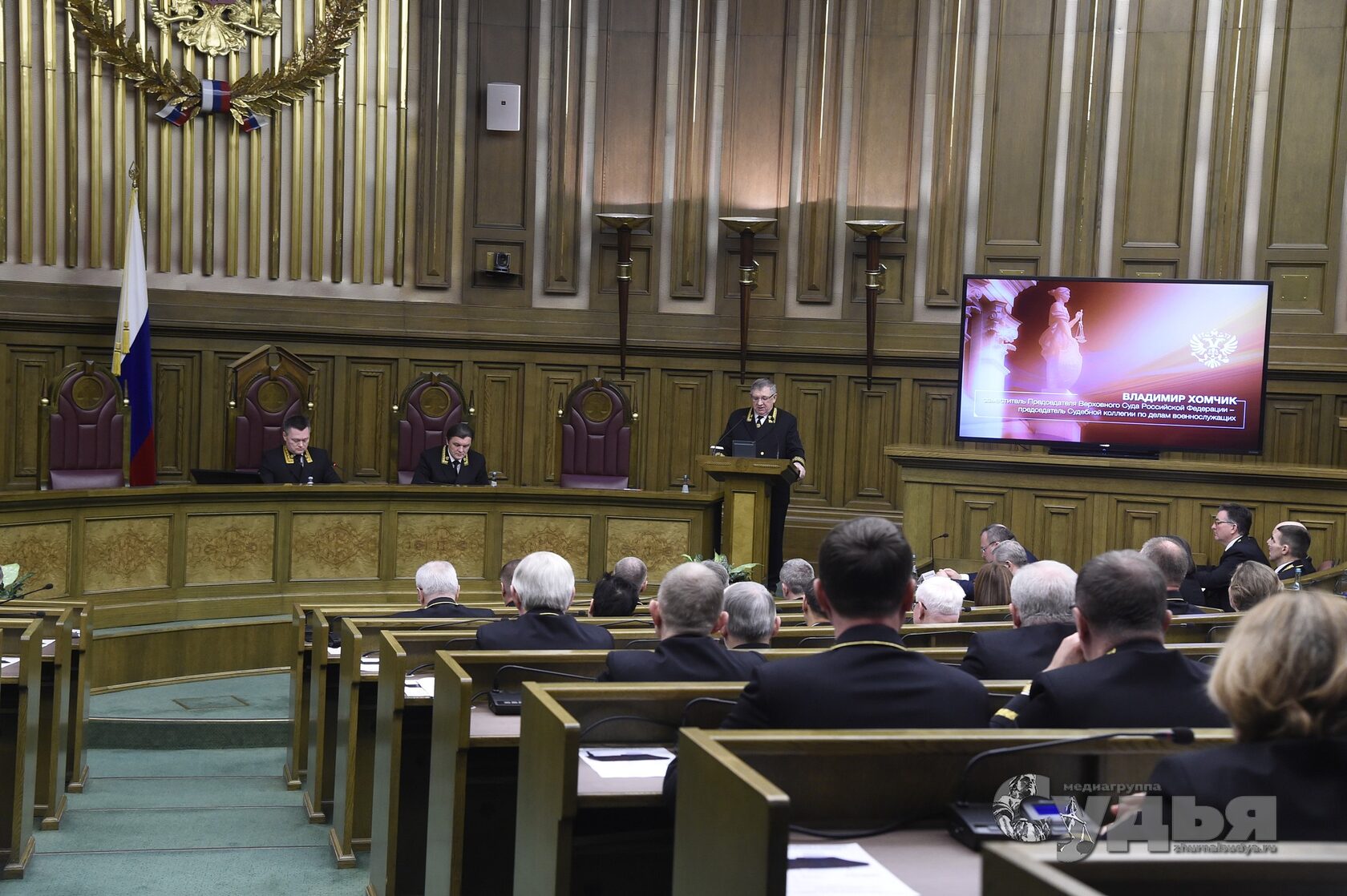 «На заседании Пленума Верховного Суда РФ зарегистрированы 76 судей. Кворум имеется. Пленум правомочен вести свою работу».